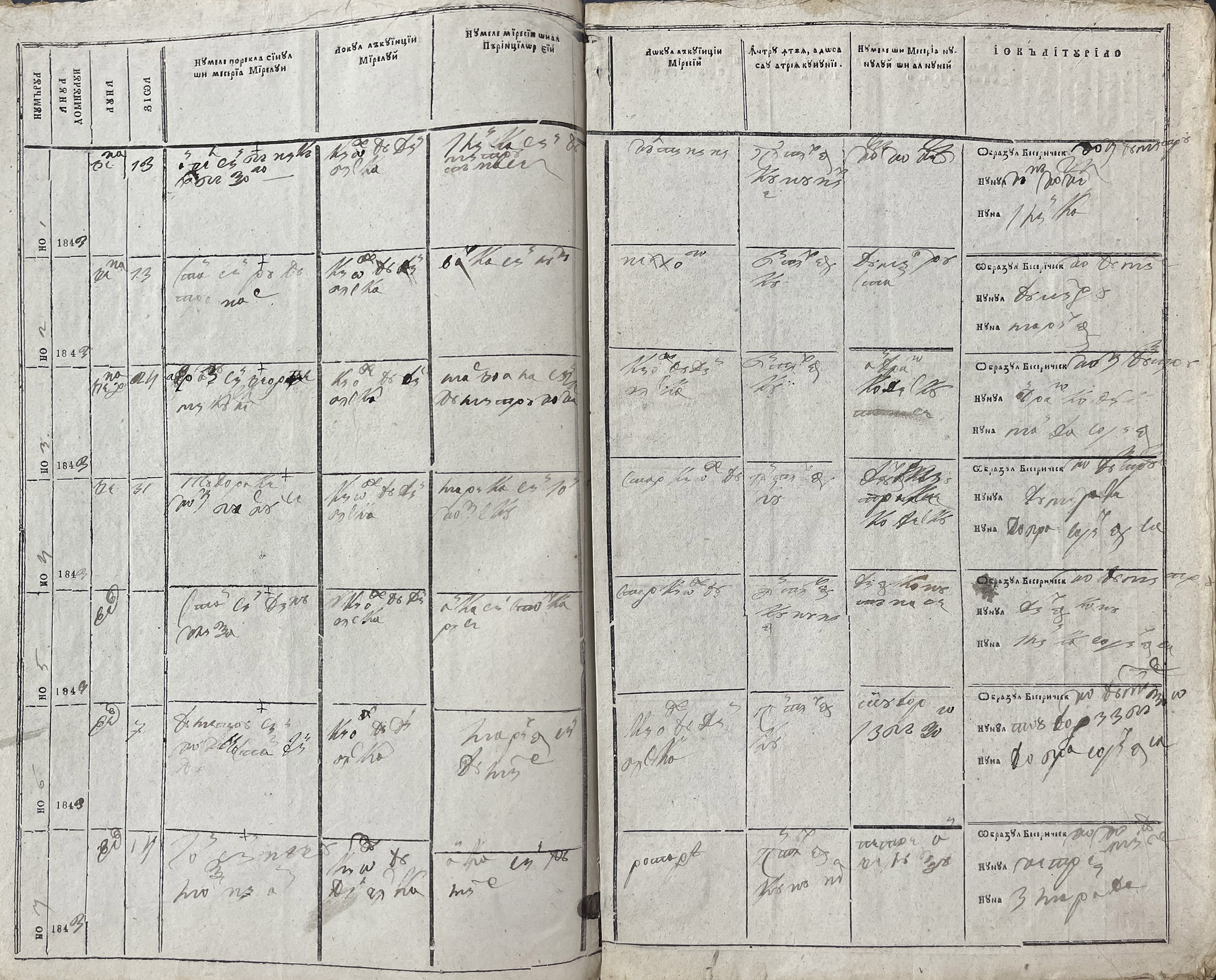 Pagini din registrul parohial pentru cununii din satul Chiojdu din Bâsca, județul Buzău, din anul 1843.